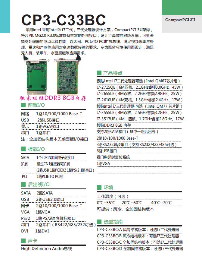采用intel 采用Intel? i7二代,三代處理器設(shè)計方案,CompactPCI 3U架構(gòu),
