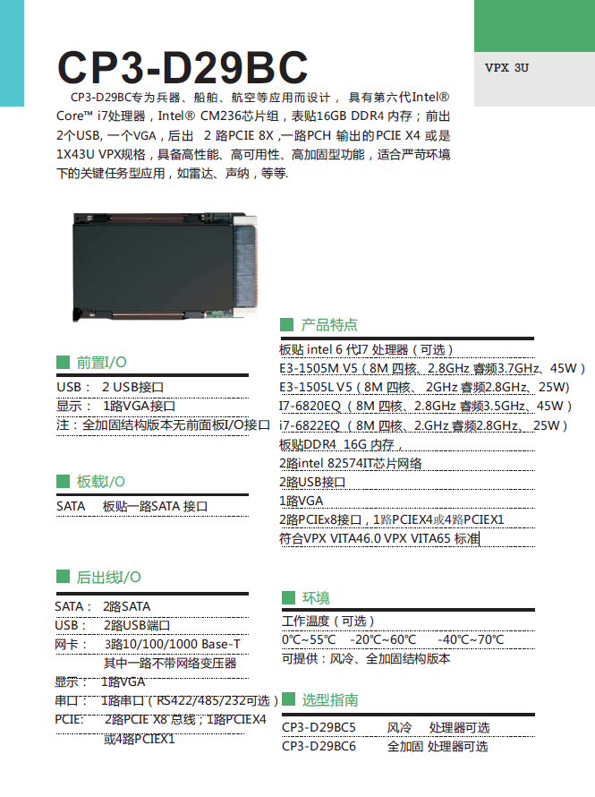 CP3-D29BC專為兵器、船舶、航空等應(yīng)用而設(shè)計, 具有第六代Intel?