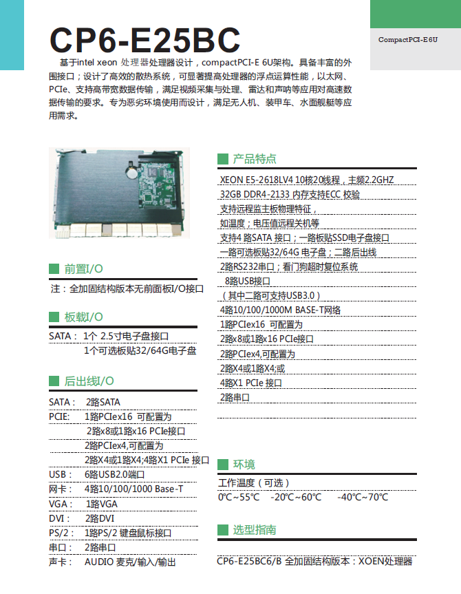 采用intel XEON處理器設計方案,compactPCI-E 6U架構(gòu),符合海軍標主板二代