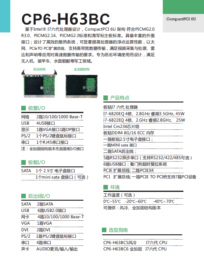 基于Intel? I7六代處理器設計,CompactPCI 6U 架構(gòu) 符合PICMG2.0