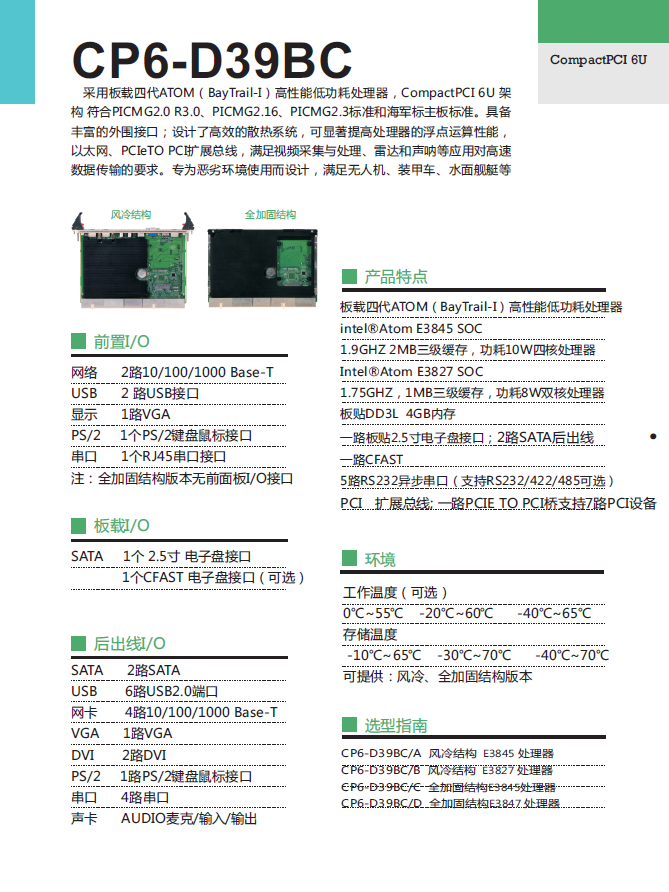 基于載四代ATOM(BayTrail-I)高性能低功耗處理器設(shè)計(jì),CompactPCI 6U 架構(gòu) 符合PICMG2.0