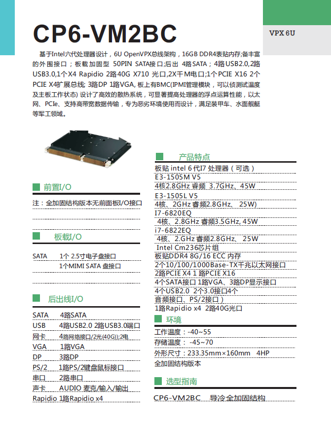 基于Intel六代處理器設(shè)計(jì),6U OpenVPX總線架構(gòu),16GB DDR4表貼內(nèi)存;備豐富