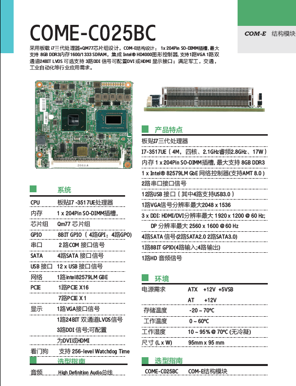 內存 1 x 204Pin SO-DIMM插槽, 大支持 8GB DDR3